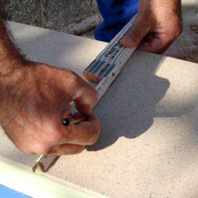 Σε μια τέτοια περίπτωση μπορούμε με τη χρήση δίσκου λείανσης να αφαιρέσουμε μονωτικό υλικό (3-4mm) για να έχουμε τέλεια εφαρμογη του novablok Terrace στο υπόστρωμα.